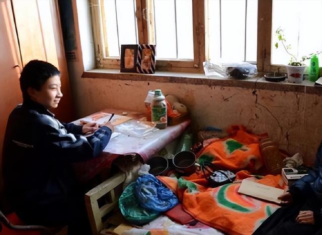 不但如此,每天干完活,他还要熬夜继续复习,做老师布置的卷子。